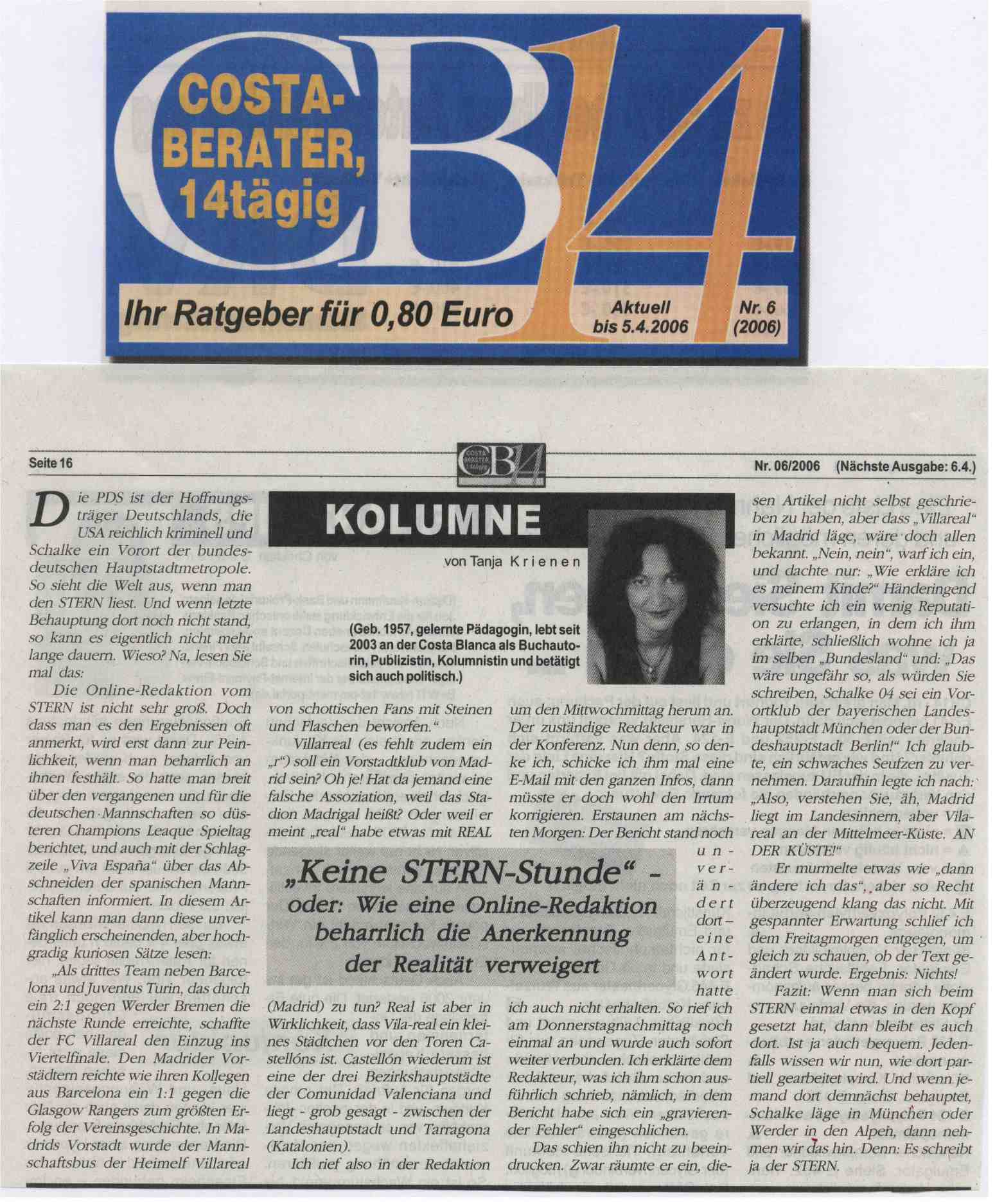 Die Online-Redaktion vom STERN ist nicht sehr groß, doch dass man es den Ergebnissen oft anmerkt, wird erst dann zur Peinlichkeit, wenn man beharrlich an ihnen festhält. So hatte man breit über den vergangenen und für die deutschen Mannschaften so düsteren Champions Leaque Spieltag berichtet, und auch mit der Schlagzeile „Viva Espana“ über das Abschneiden der spanischen Mannschaften informiert. In diesem Artikel kann man dann diese unverfänglich erscheinenden, aber hochgradig kuriosen Sätze lesen: