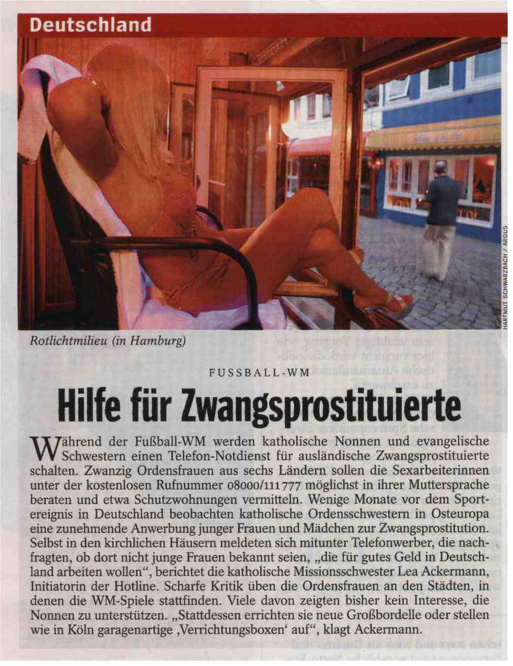 Die Option einer fortgesetzten Stigmatisierung des Prostitutionsgewerbes dokumentieren die ständigen Debatten um „Zwangsprostitution“ und „Menschenhandel“, die interessierte Verwischung der Grenzen zwischen Kinderprostitution und erwachsener Prostitution, die pauschale Diskriminierung von Sextourismus, die behördliche und mediengesteuerte Diskriminierung des Sexualverhaltens von Prostitutionskunden, die tendenzielle Gleichsetzung von Migrantinnen-Prostitution mit Sklaverei, die regierungsamtliche Zuordnung von Prostitution zu „organisierter Kriminalität“ etc. etc. All diese Formen einer verzerrten Wahrnehmung von Prostitution sind staatlich gewollt und gesponsert. Auch die permanente Präsentation von Prostituierten als „gehandelte Ware“ und „hilflose Opfer“ dient nur der Fortsetzung einer als „Fürsorge“ getarnten staatlichen Bevormundung. Für Tausende ausländischer Prostituierter in Deutschland erweist sich diese „Fürsorge“ tagtäglich als Razzia, Ausweisung und Abschiebung.