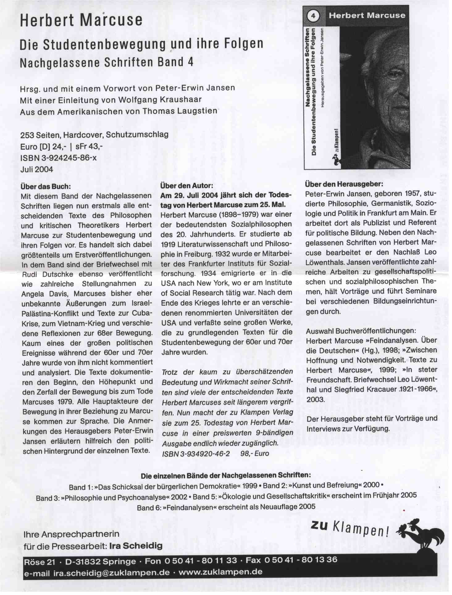 Herbert Marcuse: Die Studentenbewegung und ihre Folgen