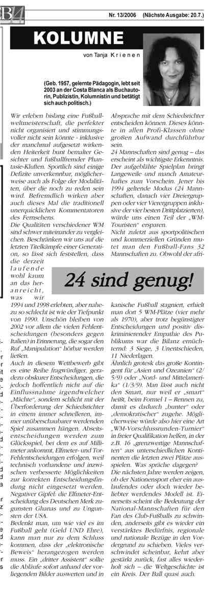 Manche Leute brauchten sogar noch das Endspiel, um den Charakter dieser zweitschlechtesten Weltmeisterschaft aller Zeiten zu erkennen. Meine Bilanz schrieb ich exact nach der Hälfte der Zeit.
