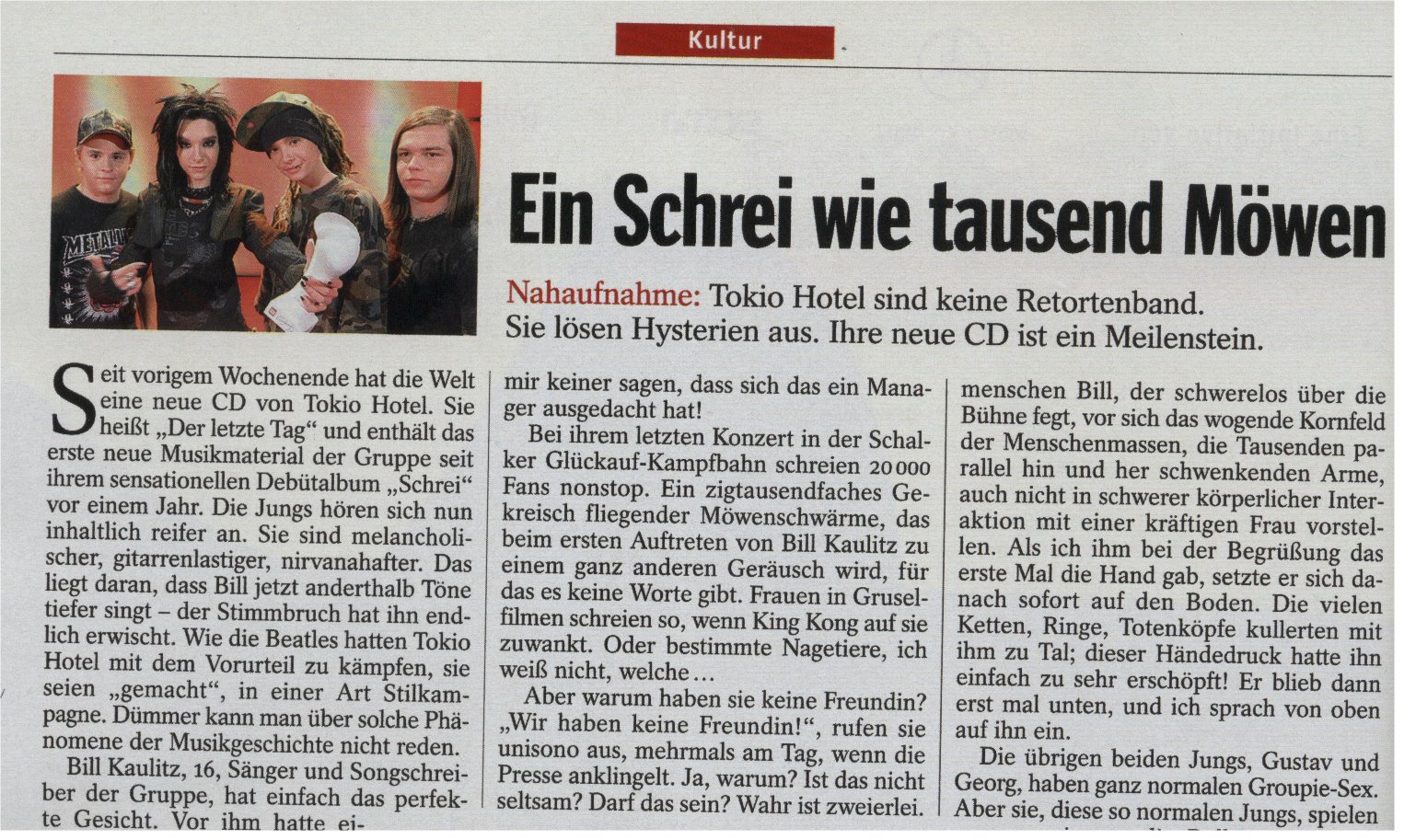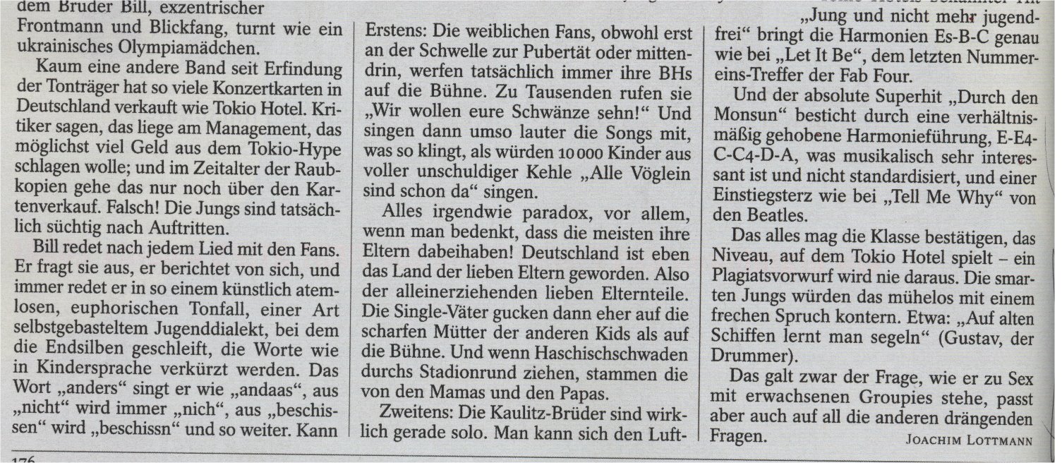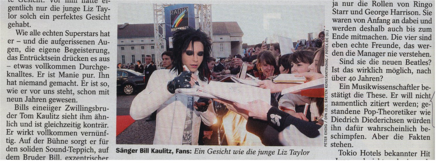 Die Beatles-Allusion im Text ist zu hoch gegriffen, aber als Pop-Rock-Band muss Tokio-Hotel wohl ernsthaft wahrgenommen werden.