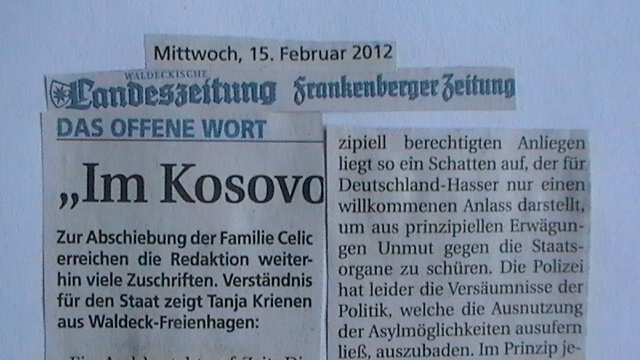 Tanja Krienen Die Waldecker Politik hat seit 2012, als es um Kosovaven ging, nichts dazugelernt. Noch immer steht sie auf der Seite der Illegalen, der Islamischen und der Perspektivlosen. Die Kosten für diese rechtsbrechende Politik wird der Gesellschaft aufgebürdet.