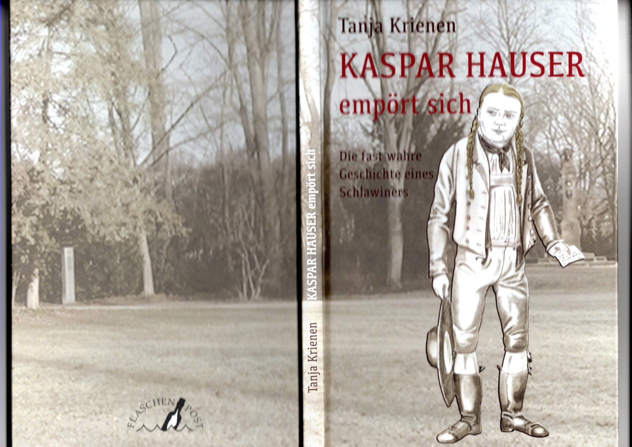 „Kaspar Hauser empört sich – Die fast wahre Geschichte eines Schlawiners“, Flaschenpost, Hardcover, 7,95 Euro, 100 Seiten, per Versand (Deutschland) 9,95 Euro; Für das weitere europäische Ausland 11,70 € - Bestellung - mail@tanjakrienen.de